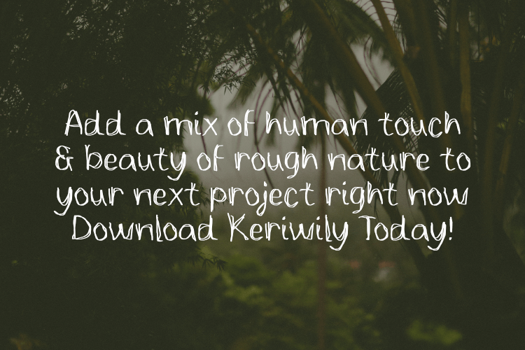 Keriwily is the font that speaks the language of the wild—perfectly imperfect, effortlessly authentic. Whether you’re building a brand that celebrates nature, individuality, or storytelling, this font becomes your voice—raw, honest, and beautifully unrefined.