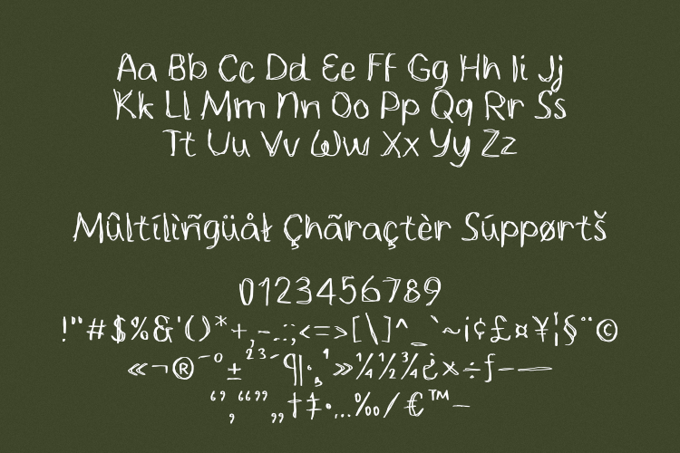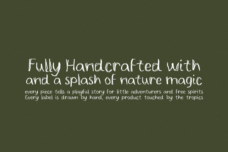 Keriwily is a playful handwritten font that brings a natural, organic vibe to your designs. Its irregular strokes and free-flowing style are perfect for nature branding, lifestyle blogs, product packaging, and children’s content. Whether you’re creating for Instagram, a cozy book cover, or eco-friendly labels, Keriwily gives your project a heartfelt, human voice that stands out in a polished digital world. Keriwily is a wild yet charming handwritten font with an unfiltered, natural vibe. Its quirky, uneven strokes and spontaneous movement reflect the carefree spirit of hand-drawn typography. This font captures the heart of brands that want to feel earthy, artistic, and approachable.