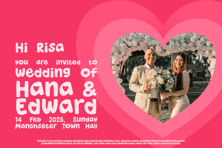 PINLOCK is a lovely, fun bold font with rounded forms and heart-filled character. It’s the perfect choice for designs that want to feel soft, sweet, and full of charm — from Valentine’s cards to kid-friendly packaging and romantic social media posts. With a bubbly structure and playful personality, PINLOCK brings warmth and love to every letter, making it ideal for cute design lovers, hobby crafters, and professional creatives alike.