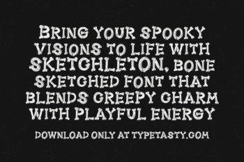 SKETCHLETON is a hand-drawn bone sketch display font that mixes a spooky yet playful energy. It feels quirky, fun, and slightly eerie perfect for Halloween themes, kids’ spooky stories, and eye-catching designs that need personality.