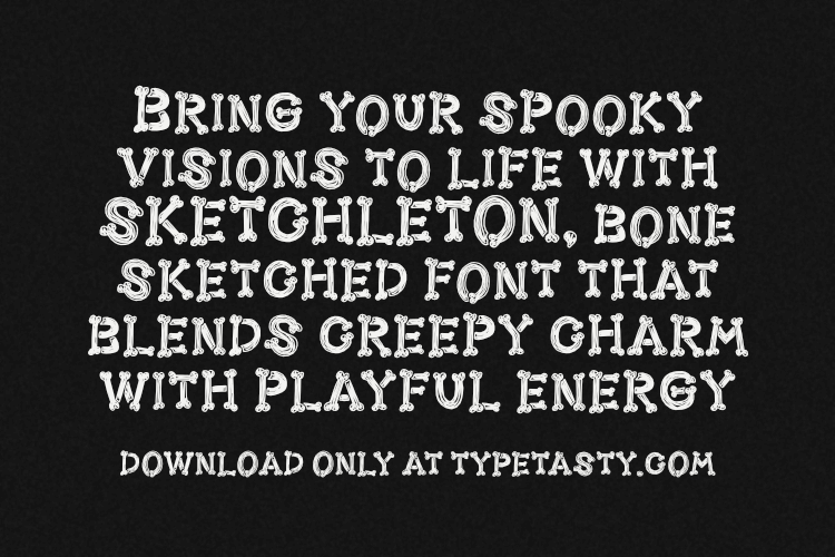 Bring your spooky visions to life with SKETCHLETON, the bone-sketch font that blends creepy charm with playful energy—crafted for designers who want their projects to instantly grab attention during Halloween and beyond.