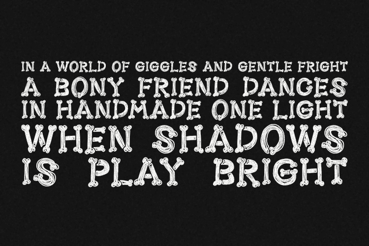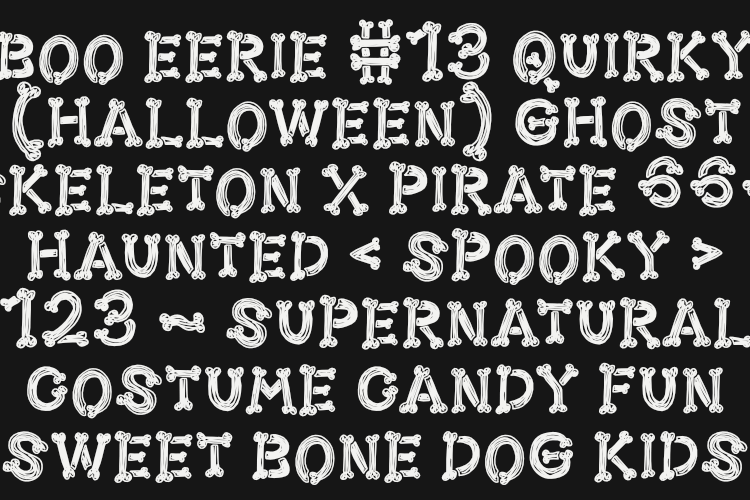 Handcrafted, sketch-like strokes with bone-inspired shapes. Each character feels organic and slightly irregular, giving it a raw, natural charm.
